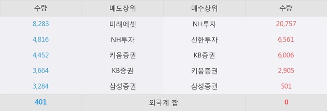 거래원 동향은 NH투자, 삼성증권 등이 매수 상위 목록에 나타나고 있다.