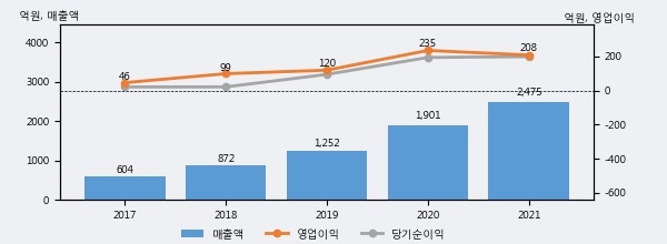 최근 3년간의 실적을 살펴보면 안정적 성장세를 보이고 있다. 최근 3년간 매출로 볼 때 매년 꾸준히 증가하고 있다. 다만 최근에 그 증가폭이 다소 감소하고 있다.