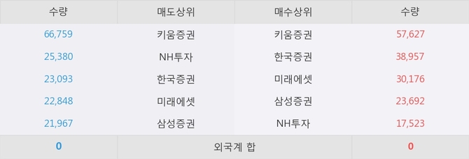 거래원 동향은 미래에셋, 삼성증권, NH투자 등이 매수 상위 목록에 나타나고 있다.