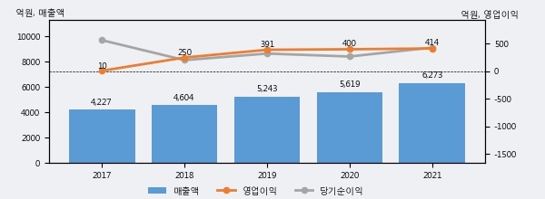 최근 3년간의 실적을 살펴보면 안정적 성장세를 보이고 있다. 최근 3년간 매출로 볼 때 매년 꾸준히 증가하고 있고 그 증가폭도 확대되고 있다.