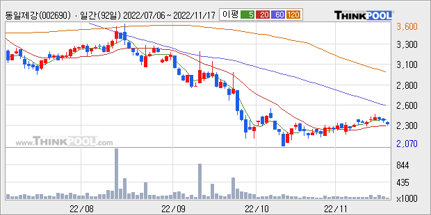 동일제강의 2021년 매출액은 1822억으로 전년대비 48.3% 상승했고, 영업이익은 79억으로 흑자전환했다. 이 회사의 매출액 증감률과 영업이익 증감률은 각각 코스피 상위 10%, 상위 1%에 해당된다.
