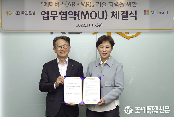 (조세금융신문=송기현 기자) KB국민은행은 한국마이크로소프트(MS)와 메타버스(3차원 가상세계) 기술 협력을 위한 업무 협약을 체결했다.