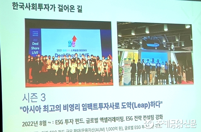 이어 최 이사장은 “한국사회투자가 투자한 글로벌 스타트업과 ESG 협력 모델을 갖춘 스타트업들을 소개하는 자리이기도 하다”고 덧붙였다.