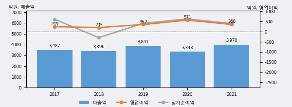 최근 실적을 살펴보면 2021년 매출액이 최근 5년 중 가장 높은 실적을 기록했음을 알 수 있다. 이전 최고 실적이었던 2019년 보다도 3.4%(128억 7천만원) 늘어난 것으로 나타났다.