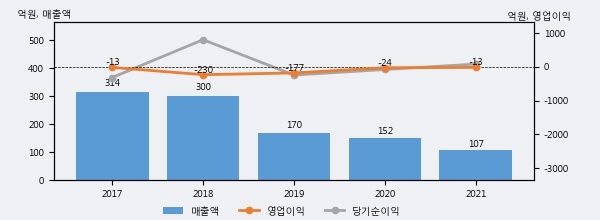 최근 3년간의 실적을 살펴보면, 매출액은 3년 연속 하락하고 있고 그 하락폭이 확대되고 있어서 투자자들은 주의깊게 살펴볼 필요가 있다.