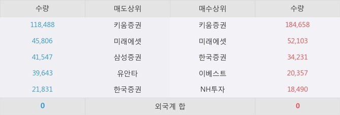 아직까지 외국계 증권사 창구를 통한 매매는 발생하지 않고 있다. 그리고 이 시간 미래에셋이 매수창구상위에 올라있는 종목은 이 종목 이외에도 키네마스터, 한국주철관 등이 있다.