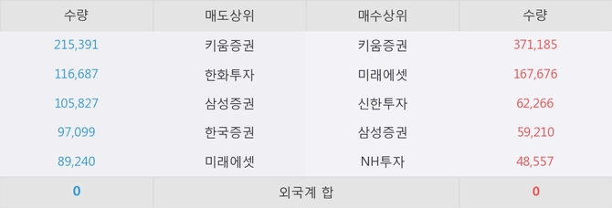 거래원 동향은 미래에셋, 삼성증권, NH투자 등이 매수 상위 목록에 나타나고 있다.