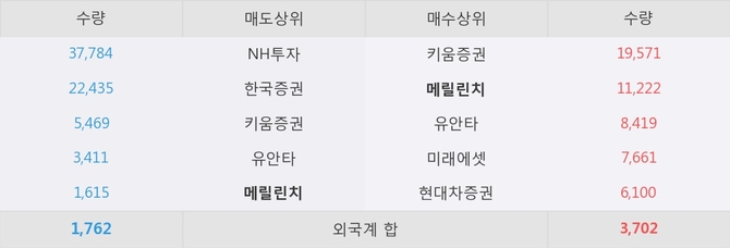 거래원 동향은 메릴린치, NH투자가 매도 상위 목록에 나타나고 있다. 한편, 매수 창구 상위에는 메릴린치가 눈에 띄고 있다.