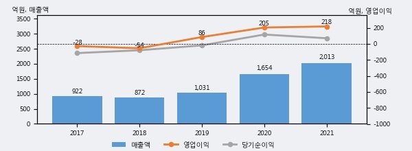 최근 3년간의 실적을 살펴보면 안정적 성장세를 보이고 있다. 최근 3년간 매출로 볼 때 매년 증가하고 있다. 다만 최근에 그 증가폭이 다소 감소하고 있다.