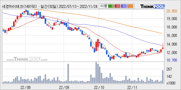 세경하이테크는 2021년 매출액 2683억원과 영업이익 174억원을 기록했다. 전년대비 매출은 22.0%, 영업이익은 763.2% 각각 상승했다. 이 회사의 매출액 증감률과 영업이익 증감률은 각각 코스닥 상위 36%, 상위 3%에 해당된다.