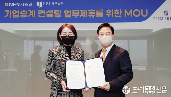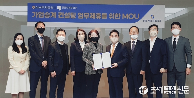 (조세금융신문=김영기 기자) #두둥_11월28일 오후 3시 서울 여의도 NH투자증권 본사 18층 VIP 회의실 이곳에서 NH투자증권 Premier Blue본부(대표 이재경)과 영앤진세무법인(대표 김정수)가 ‘가업승계 컨설팅 업무제휴’를 위한 양해각서(MOU) 체결식을 개최했다.