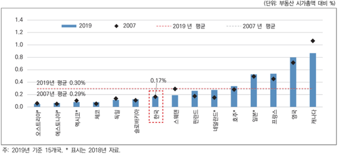 이어 OECD, 세계은행, IMF모두 불평등 완화와 포용성장을 위해서 부동산 보유세 강화를 정책적으로 권고하고 있다며, 2019년 OECD 15개국의 보유세 실효세율 비교에서 한국 보유세 수준(0.17)은 OECD평균(0.30)의 절반에 그친다고 지적했다.