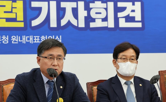 김성환 정책위의장은 이날 국회 예산안 협상 관련 기자회견에서 종부세 기본공제 기준을 1주택자는 11억원에서 12억원으로, 다주택자는 6억원에서 9억원으로 상향하는 데 여당과 잠정합의했다고 밝혔다.