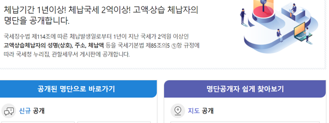 대상은 1년간 2억 이상 체납한 경우다.