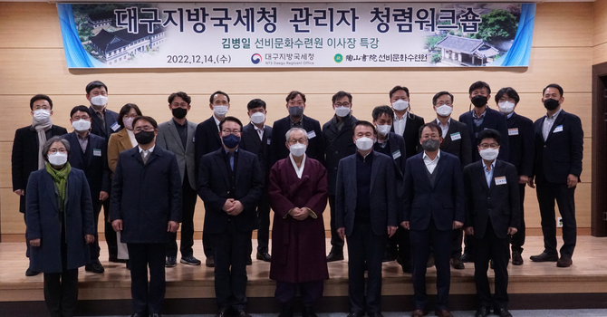 (조세금융신문=고승주 기자) 대구지방국세청(청장 정철우)이 지난 14일 안동 도산서원(선비문화수련원)에서 동대구, 북대구, 안동, 영주 세무서의 관리자 20여명과 함께 청렴 워크숍을 열었다고 15일 밝혔다.
