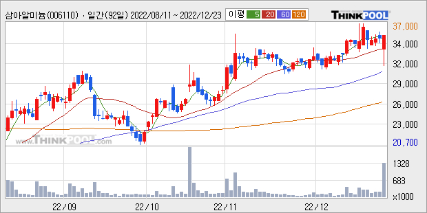 삼아알미늄의 2021년 매출액은 2530억으로 전년대비 28.4% 상승했고, 영업이익 또한 154억으로 전년대비 109.3% 상승했다. 이 회사의 매출액 증감률과 영업이익 증감률은 각각 코스피 상위 24%, 상위 25%에 해당된다.