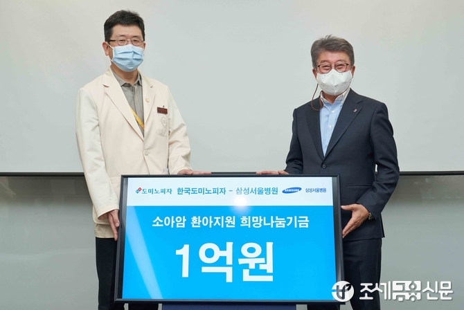 (조세금융신문=송기현 기자) 도미노피자는 23일 희망 나눔 기금으로 삼성서울병원에 1억원, 강남세브란스병원에 5천만원의 기부금을 각각 전달했다고 밝혔다.