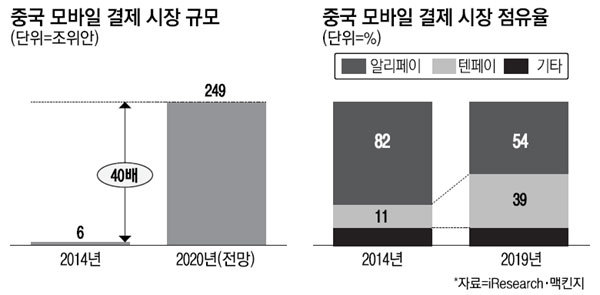 중국의 모바일 금융 시장도 다른 나라 못지않게 큰 발전을 보이고 있다. 전세계에서 가장 많은 빅데이터 보유국이고 알리바바, 텐센트, 바이두 등의 IT, SNS, 온라인 거래로 대변되는 글로벌 기업의 성장이 중국 국민들의 소득증가와 맞물리면서 핀테크 시장도 덩달아 큰 변화와 성장을 진행하고 있다.