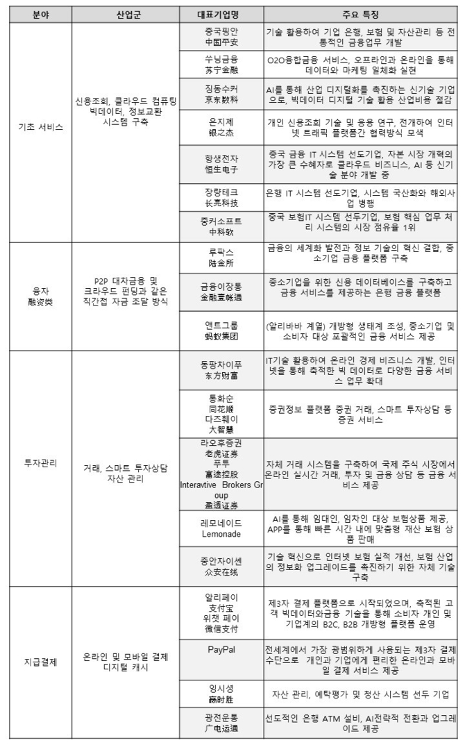 KOTRA의 해외시장 뉴스에서 중국의 핀테크 성장 리포트에서 언급한 내용을 살펴보면 그 정도를 여실히 알 수 있다. <2020년 글로벌 핀테크 개발 보고서(2020全球金融科技发展报告)>에 따르면, 글로벌 핀테크 상위 10개국가는 중국, 미국, 영국, 호주, 캐나다, 싱가포르, 일본, 독일, 네덜란드, 프랑스로 나타났다. 전 세계 핀테크 상장기업의 시가총액의 89%가 중국과 미국이 차지하고 있으며, 중국과 미국의 양강 구도로 전세계 핀테크 시장의 흐름을 주도하고 있다.