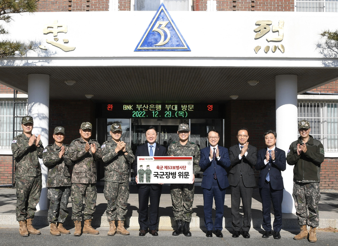 (조세금융신문=구재회 기자) BNK부산은행(은행장 안감찬)은 29일(목) 오전, 연말을 맞아 해운대구에 소재한 ‘육군 제53보병사단’에 방문해 위문금을 전달했다고 밝혔다.