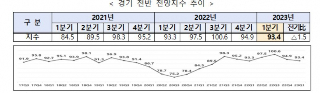 경기 전반 전반지수는 기준점인 100을 넘을 경우 전분기보다 긍정적으로 전망한 기업이 많다는 의미고, 100 아래면 그 반대를 뜻한다.