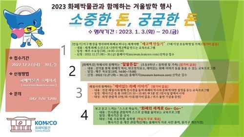(조세금융신문=최주현 기자) 한국조폐공사 화폐박물관은 겨울방학을 맞아 오는 20일까지 화폐 교육 프로그램 '소중한 돈, 궁금한 돈'을 실시한다.