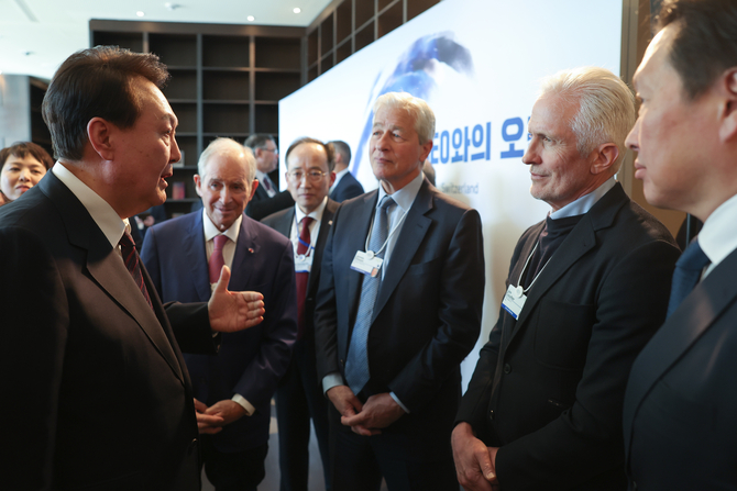 JP모건의 제이미 다이먼 회장은 "한국에서 오랫동안 비즈니스를 해왔다"며 "한국은 천연자원이 없어도 직업윤리, 교육, 엔지니어링 기술, 개방성으로 아일랜드나 싱가포르처럼 성공적인 국가를 만들어 냈다. 앞으로도 지켜보고 싶은 가능성의 나라"라고 평가했다.