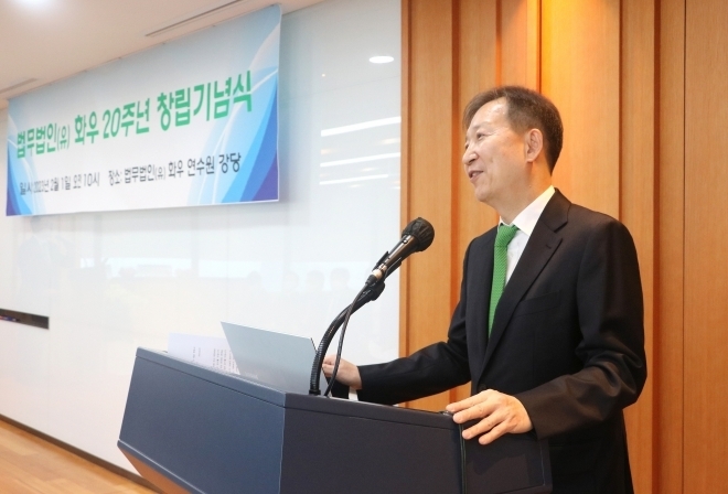 정진수 화우 대표변호사는 기념사에서 “화우는 서로 믿고 미래를 만들어 낼 수 있다는 희망과 그에 터잡은 결단들을 통해 한국 사회에서 의미 있는 역할을 하는 자랑스러운 로펌이 되었다” 고 말했다.