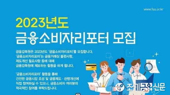 (조세금융신문=김종태 기자) 금융감독원은 12일 불합리한 금융 관행 개선 등 금융소비자 보호를 위한 제도 개선을 위해 13일부터 24일 오후 5시까지 '2023년도 금융소비자 리포터' 330여명을 모집한다고 밝혔다.