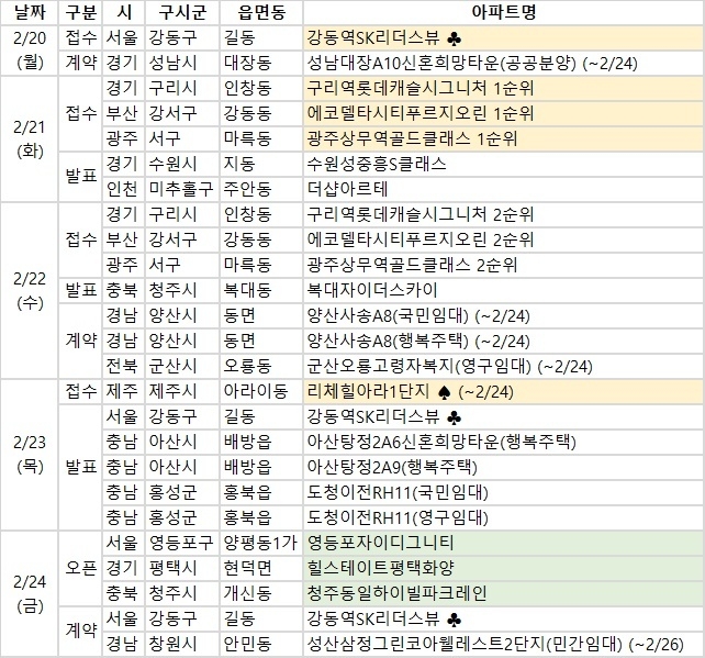 주요 분양물량은 경기 구리시 인창동 '구리역롯데캐슬시그니처', 부산 강서구 강동동 '에코델타시티푸르지오린', 광주 서구 마륵동 '광주상무역골드클래스' 등이다.