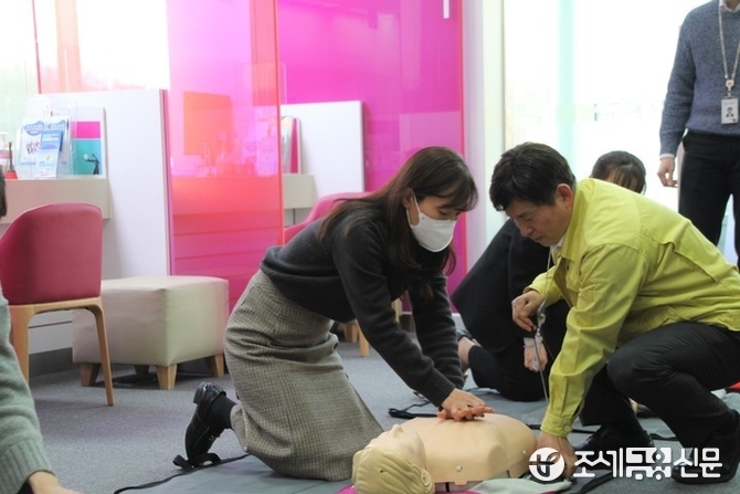 22일 흥국생명에 따르면 전날 실시된 안전사고 예방교육은 응급환자 발생 시 대응법에 관한 내용을 위주로 진행됐다. 교육에 참여한 임직원들은 상황별 응급처치법 등을 배우고 심폐소생술을 실습했다.
