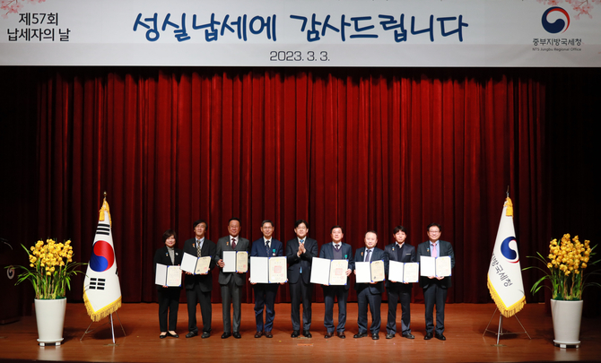 한편, 중부지방국세청은 모범납세자 214명, 사회공헌 활동을 통해 나눔 문화를 적극적으로 실천한 ‘아름다운 납세자’ 4명, 국세행정에 적극 협조해 건전한 납세문화에 기여한 ‘세정협조자’ 44명을 선정했다.
