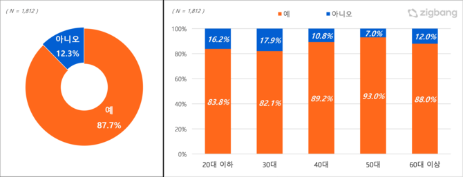이번 조사는 지난달 14일부터 28일까지 직방 앱 접속자를 대상으로 모바일 설문으로 진행됐다. 응답자는 1812명이다.