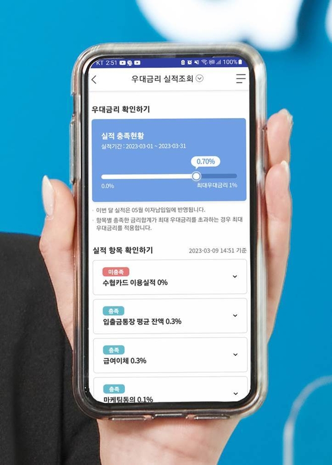 우대금리 실적이 충족되지 않은 고객에게는 우대혜택을 받을 수 있는 방법을 안내하고 해당 상품이나 서비스 가입 화면으로 연결해 준다.
