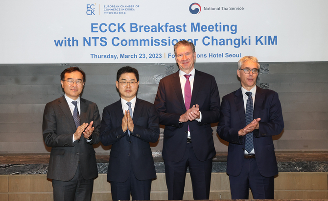 (조세금융신문=고승주 기자) 김창기 국세청장이 23일 오전 주한유럽상공회의소(이하 ECCK)와 간담회에 참석해 외국계 기업을 위한 세정지원 방안을 설명했다.