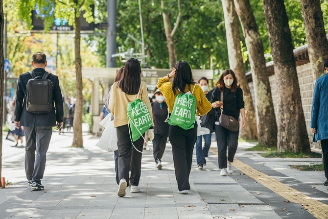 롯데백화점은 경희궁 공원 입구에 ‘리얼스 마켓’ 부스를 설치해 참여자들에게 집게, 생분해 봉투 등 플로깅 도구를 대여해 주고 참가자가 수거한 쓰레기의 양에 따라 다양한 굿즈를 증정할 예정이다.