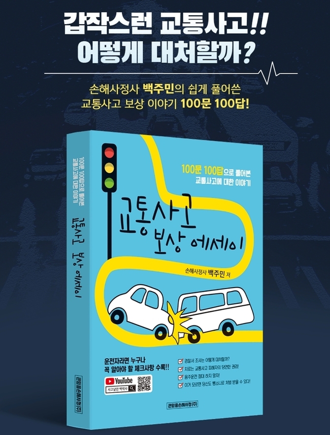 이 같은 교통사고 피해자들을 위해 ‘교통사고 보상 에세이’가 발간됐다. 사고 이후 처리 방법과 피해자들의 권리를 찾을 수 있도록 100개의 질문과 답으로 교통사고 이야기가 담겼다.