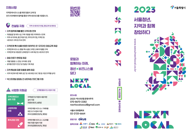 신청·접수 관련 문의는 운영사무국(☎ 070-8670-2282) 또는 서울시 대외협력과(☎ 02-2133-6664) 또는, 넥스트로컬 홈페이지에서 확인할 수 있다.