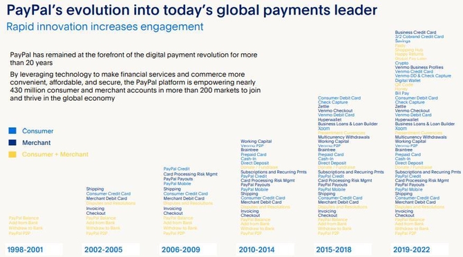 아래의 자료를 보면 알 수 있듯이 페이팔은지속적인 기업 인수와 이에 따른 새로운 서비스를 제공하기 위해 노력하고 있다.