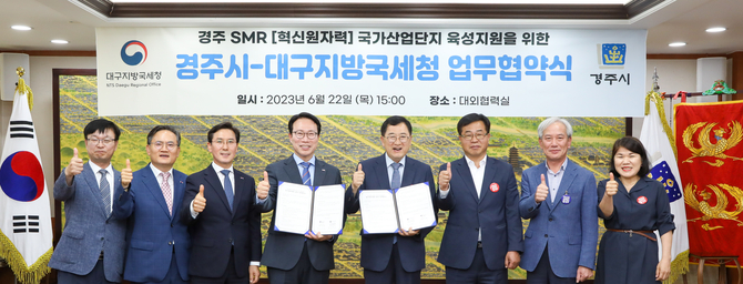 (조세금융신문=고승주 기자) 대구지방국세청(청장 정철우)과 경주시(시장 주낙영)가 지난 22일 ‘경주 SMR 국가산업단지 육성 지원을 위한 업무협약(MOU)’을 체결했다.