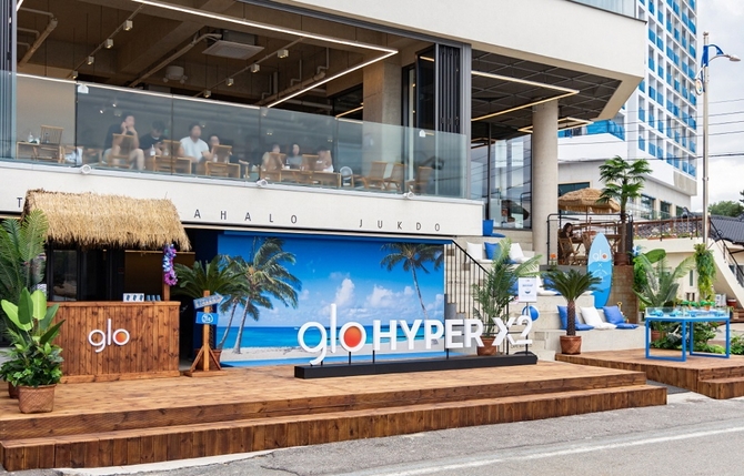 ‘글로 리프레시 팝업스토어’는 궐련형 전자담배기기 글로 하이퍼X2 메탈 블루 컬러 출시에 맞춰 이국적인 풍경과 서핑 해변으로 큰 인기를 얻고 있는 강원도 양양의 죽도 해변 앞에 자리 잡았다.