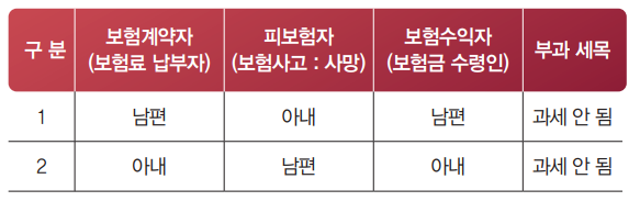 위 2와 같은 방식을 응용하여 다음과 같이 남편과 부인이 서로 교차보험을 가입하면 상속세를 내지 않을 수 있다. 물론 주의할 점은 남편과 부인이 각각 보험금을 직접 납부할 수 있는 경제적 자력이 있는지를 꼭 판단해야 한다.