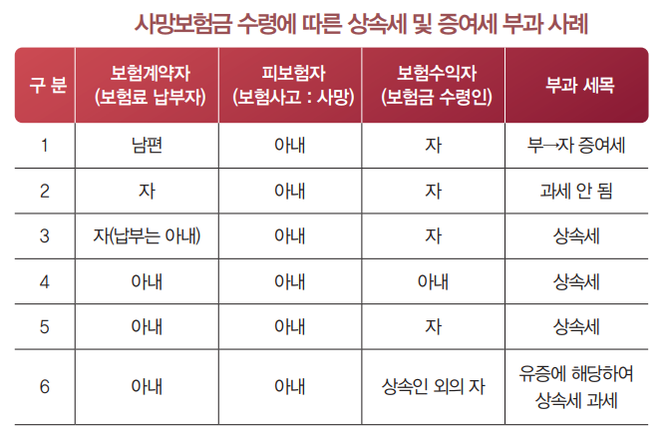 이때 보험계약자가 피상속인이 아닌 경우에도 피상속인이 실질적으로 보험료를 납부하였을 때에는 피상속인을 보험계약자로 보아 상속재산으로 보고 있다. 그럼 사망보험금의 수령에 따른 상속세 및 증여세 부과 사례를 살펴보자.