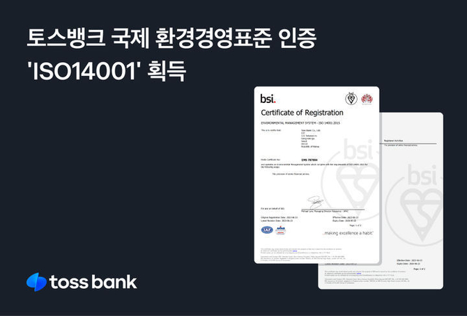 토스뱅크 관계자는 "이번 인증 획득을 기점으로 환경경영의 큰 틀을 지속적으로 이어가는 한편, 각종 자원의 효과적 관리와 함께 환경성과 개선을 이어나갈 방침"이라고 말했다.