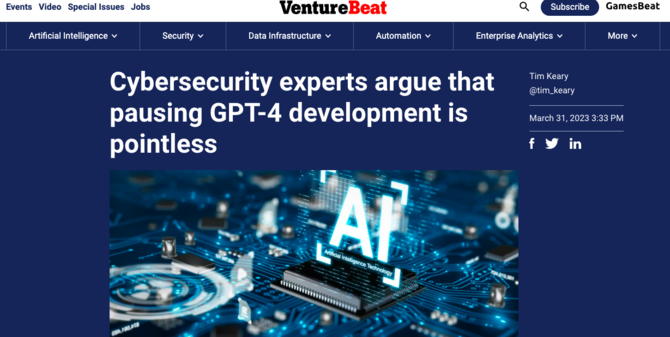 미국 IT 연구 자문사 가트너(Gartner) 소속 수석 분석가인 아비바 리탄(Avivah Litan)은 <벤처비트(Venture Beat)>와의 인터뷰에서 “빠른 시간 안에 범용인공지능(Artificial General Intelligence, AGI) 기능이 탑재될 GPT-5가 GPT-4를 뒤따를 것”이라고 주장했다. 이어 “AGI가 등장하면 보안제어(Security Management)를 도입하기에는 너무 늦을 가능성이 높으며 더 이상 인류를 효과적으로 보호할 수 없을 것”이라고 깊은 우려를 표명했다.