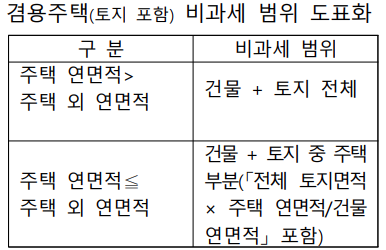 또한, 겸용주택(상가와 주택이 결합된 주택)의 경우 토지를 포함한 비과세 범위가 조문으로 나열되어 있던 것을 알기 쉽게 도표화했다.