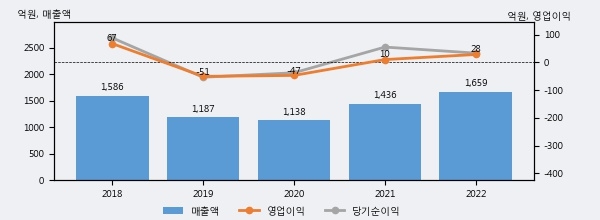 최근 실적을 살펴보면 2022년 매출액이 최근 5년 중 가장 높은 실적을 기록했음을 알 수 있다. 이전 최고 실적이었던 2018년 보다도 4.6%(73억 3천만원) 늘어난 것으로 나타났다.