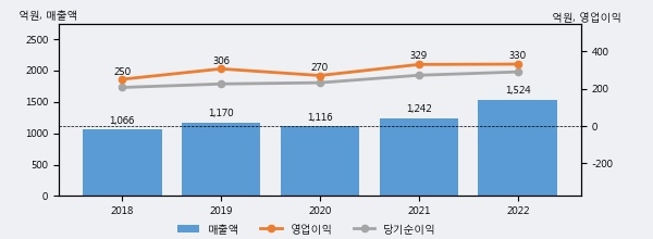 최근 실적을 살펴보면 2022년 매출액이 최근 5년 중 가장 높은 실적을 기록했음을 알 수 있다. 이전 최고 실적이었던 2021년 보다도 22.7%(282억 3천만원) 늘어난 것으로 나타났다.