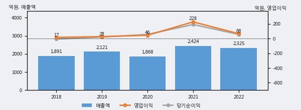동양에스텍은 2022년 매출액 2325억원과 영업이익 68억원을 기록했다. 전년대비 매출은 -4.1%, 영업이익은 -70.4% 각각 하락했다. 이 회사의 매출액 증감률과 영업이익 증감률은 각각 코스닥 하위 23%, 하위 20%에 해당된다.
