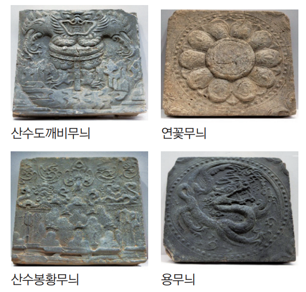 외리문양전은 부여 외리의 사찰터에서 출토된 백제시대의 벽돌로 42매가 완전한 형태로 발굴되었다(1937년). 보물로 지정된 8매는 봉황무늬, 산수무늬, 산수도깨비무늬, 산수봉황무늬, 연꽃도깨비무늬, 연꽃구름무늬, 연꽃무늬, 용무늬이다. 특히, 산수무늬문전은 산과 나무, 하늘과 물, 누각과 사람을 그림처럼 표현했다. 삼신산과 신선사상이 산 아래의 입석 돌기(突起), 산 위의 수목 배치, 집과 신선, 하단에 물줄기와 봉우리로 표현되고 있다.